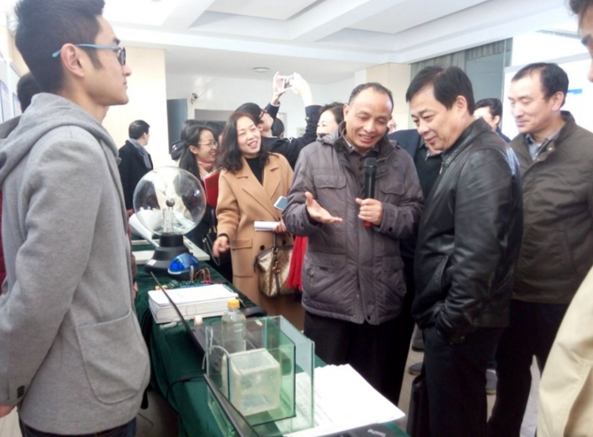 此次实践教学成果展旨在强化实践育人环节,营造实践育人的氛围,搭建实践教学交流平台,充分展示各学院一年来的实践教学突出成果。活动中,校领导在15个教学院相关负责人和学生的解说下认真观看了展板、实物、竞赛获奖作品、自制教学仪器设备(教具),同时仔细询问了相关实践教学组织、竞赛参与、实践教学改革和实验室建设情况,充分肯定此次展示作品的科技含量、创新性,成果水平有明显提升,且针对各学院实践教学改革的未来发展方向提出了合理性建议。