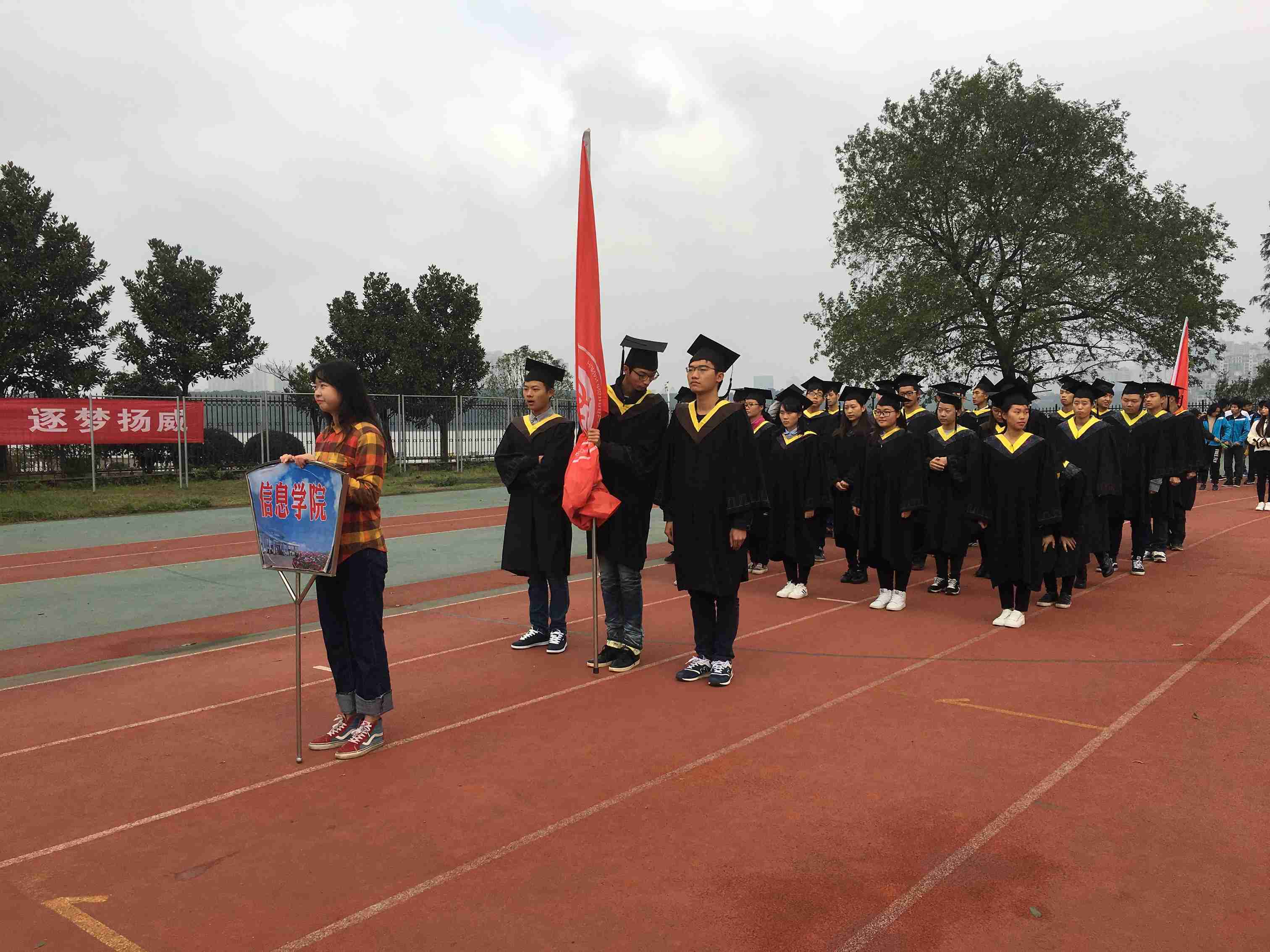 2016年11月10日上午,太阳网集团tcy8722校运会于东院田径场隆重举行。8点10分,在温柔明亮的阳光下,运动会开幕式开始。信息学子们神采奕奕、精神饱满,身着黑色学士服的他们,怀着对身为信息人的自信,昂首挺胸地走过主席台,用最好的精神状态给人们留下了深刻的印象。