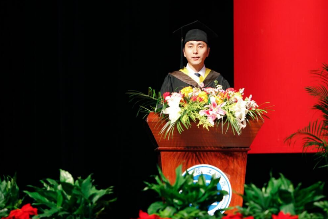 优秀毕业生代表闻昭权发言,他回忆了自己大学四年的点滴,表示将铭记着四年间老师的教诲,感恩母校的培育,走入社会后牢记母校的嘱托,努力工作,回报母校。在校生代表何佳倩则表达了对即将毕业的学长学姐们的美好祝愿。