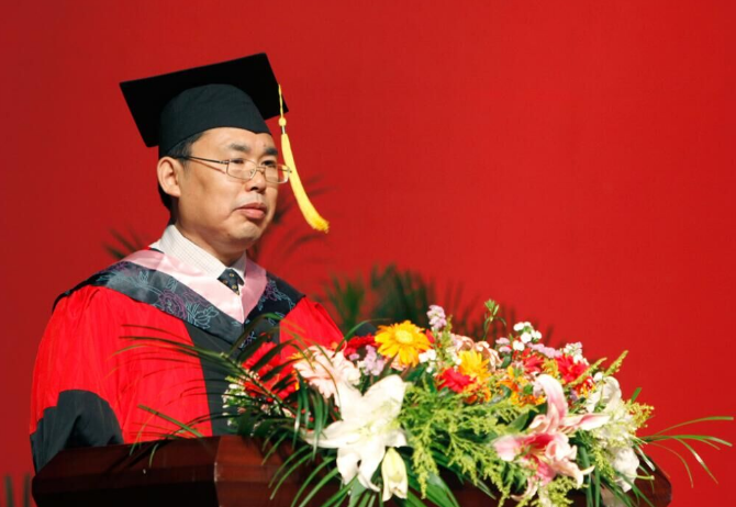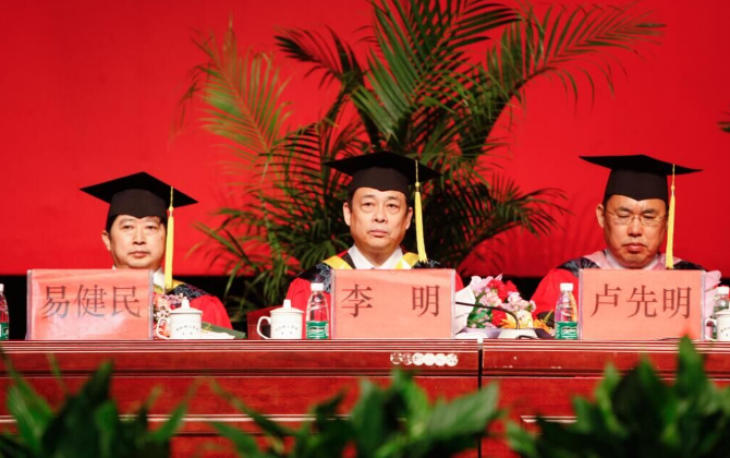典礼上,校长卢先明发表了热情洋溢的讲话。他说:“看着你们就像看着自己的孩子,既为你们大学四年的点滴成长感到欣慰和自豪,也为你们即将的离别感到不舍与惆怅,更要为你们精彩的明天真诚的祈愿和祝福”。