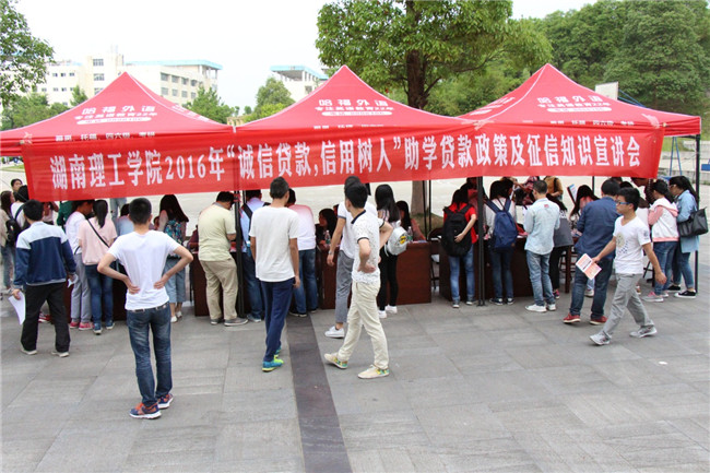5月18日下午, 2016年太阳网集团tcy8722“诚信贷款,信用树人”助学贷款政策和征信知识宣讲会在南院七栋学生宿舍楼前举行。学工部负责人、学生资助管理中心老师、各学院资助专干及各学院学生代表参加了此次宣讲会。