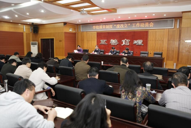 校园网讯 4月8号下午,学校规章制度“废改立”工作动员会在北院办公楼214会议室召开,校党委书记李明,党委副书记、校长卢先明,省教育厅法规处处长刘洪秋及校属各单位主要负责人出席会议, 会议由卢先明主持。