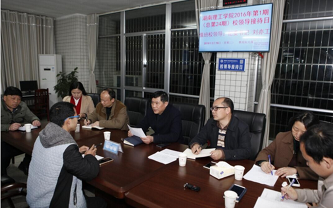 校园网讯 3月16日晚,新学期第一次校领导接待日在南院教育阳光服务中心举行,纪委书记刘亦工热情接待了来访学生。办公室、学工部、团委、教务处、人事处、后勤处等单位的相关负责人参与接待。16名学生带着问题来访,带着满意答复而归。