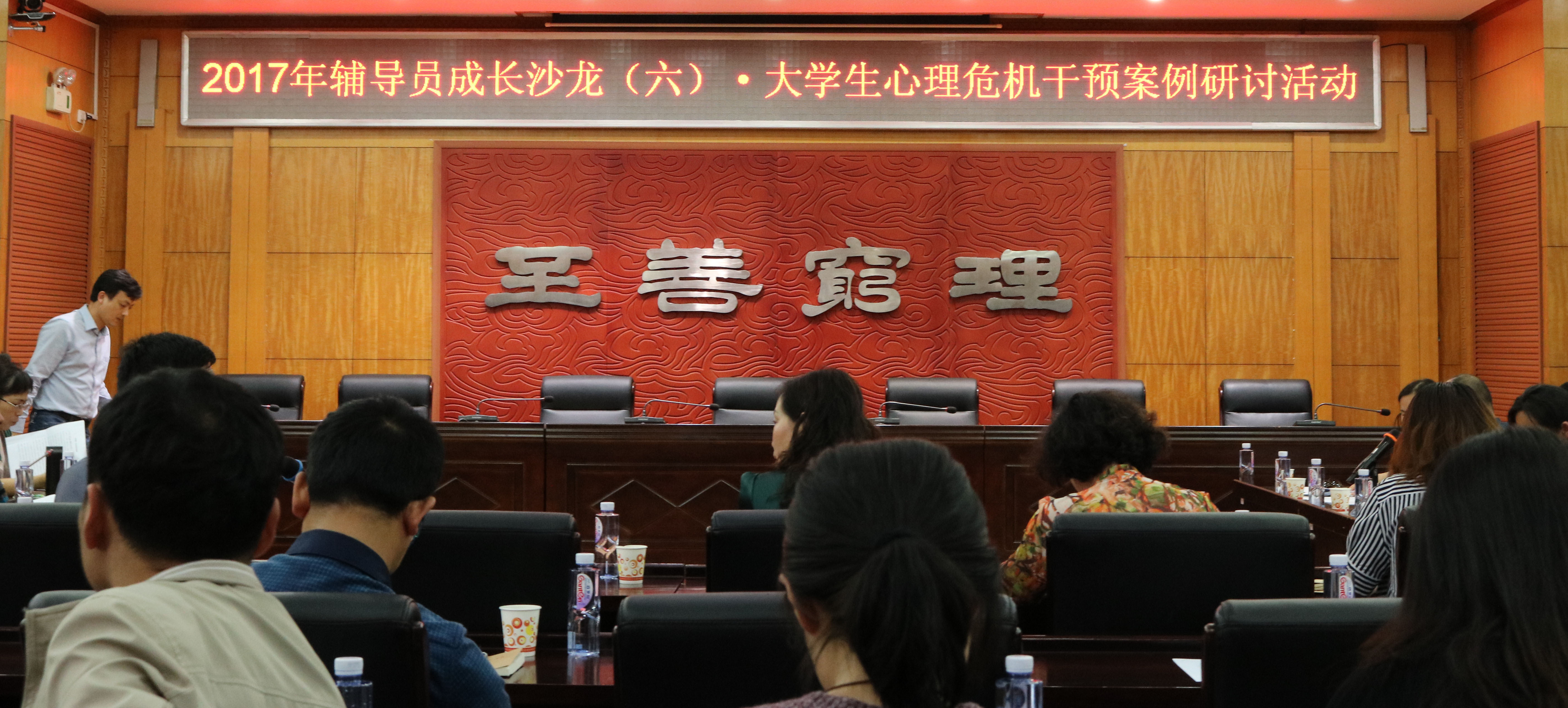 校园网讯 4月19日下午两点半,一场以大学生心理危机干预案例研讨为主题的“辅导员成长沙龙”在办公楼214会议室展开。副校长徐小立亲临现场,学工部负责人、各学院副书记和辅导员、南湖学院学生工作负责人及获得国家二级心理咨询师的相关老师参加。