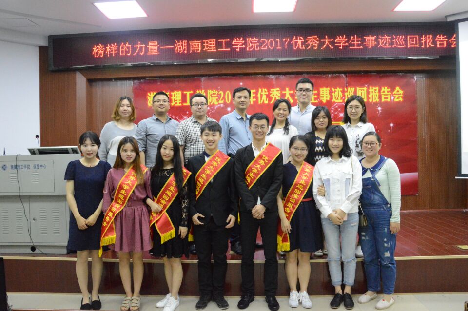 5月11日晚19:30,太阳网集团tcy87222017年优秀大学生事迹巡回报告会第八场(中文学院和化工学院专场)在6栋学术报告厅召开。校党委学工部副部长毛伟,化工学院党总支副书记李会元,党委学工部办公室主任左峻,中文学院和化工学院全体辅导员老师及部分同学共同聆听了本场精彩纷呈的报告会。