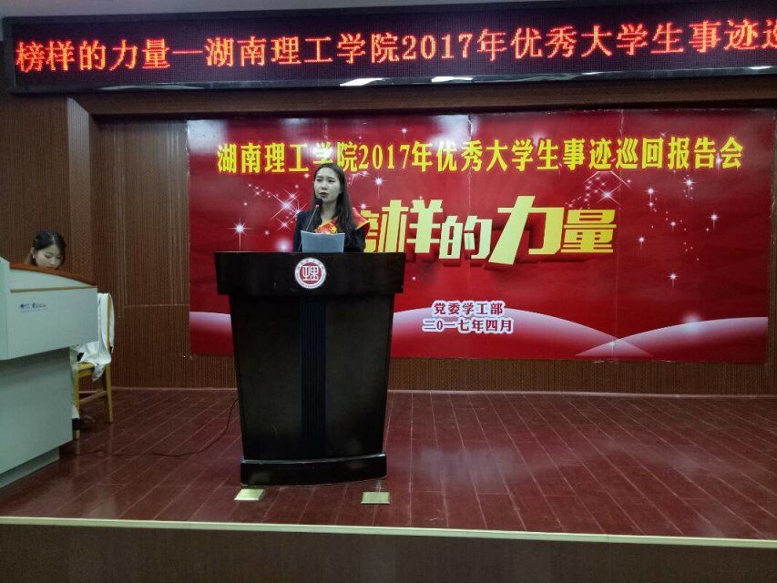 随后,中文学院王思琪、物电学院刘妍、计算机学院卢杰、政法学院段林、经管学院甘玲等五位优秀学生代表陆续上台讲叙了自己在大学期间的学习和奋斗经历,与同学们分享了自己的心得及感悟,并对学弟学妹们的大学生活提出了合理的意见和建议。
