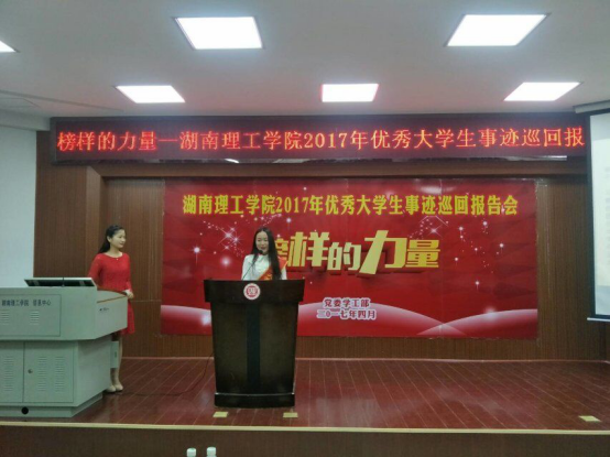 报告会在王云朋部长热情洋溢开场白中开始,他讲述了此次活动的主要内容以及意义,激励同学们向优秀大学生们学习。首先由物电学院14级的刘妍开场,她用“因为要成长,所以要遭遇”来鼓励同学们积极进取;中文学院14级王思琪深情讲述 “上下求索,何惧山高水长”在场同学备受鼓舞。计算机学院14级的卢杰主和音乐学院14级的陈佳欣也分别为同学们介绍他们的学生工作和学习生活的心得。最后上场的是来自外语学院14级的袁铨茂,她以一口流利的韩语作为开场,赢得众人喝彩。“深做源泉,心在外院”是她的信仰,“生是外院的人,死是外院的魂”则是她为学院奉献的真实写照。