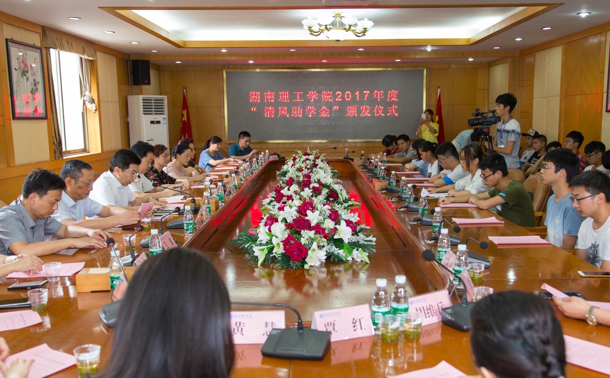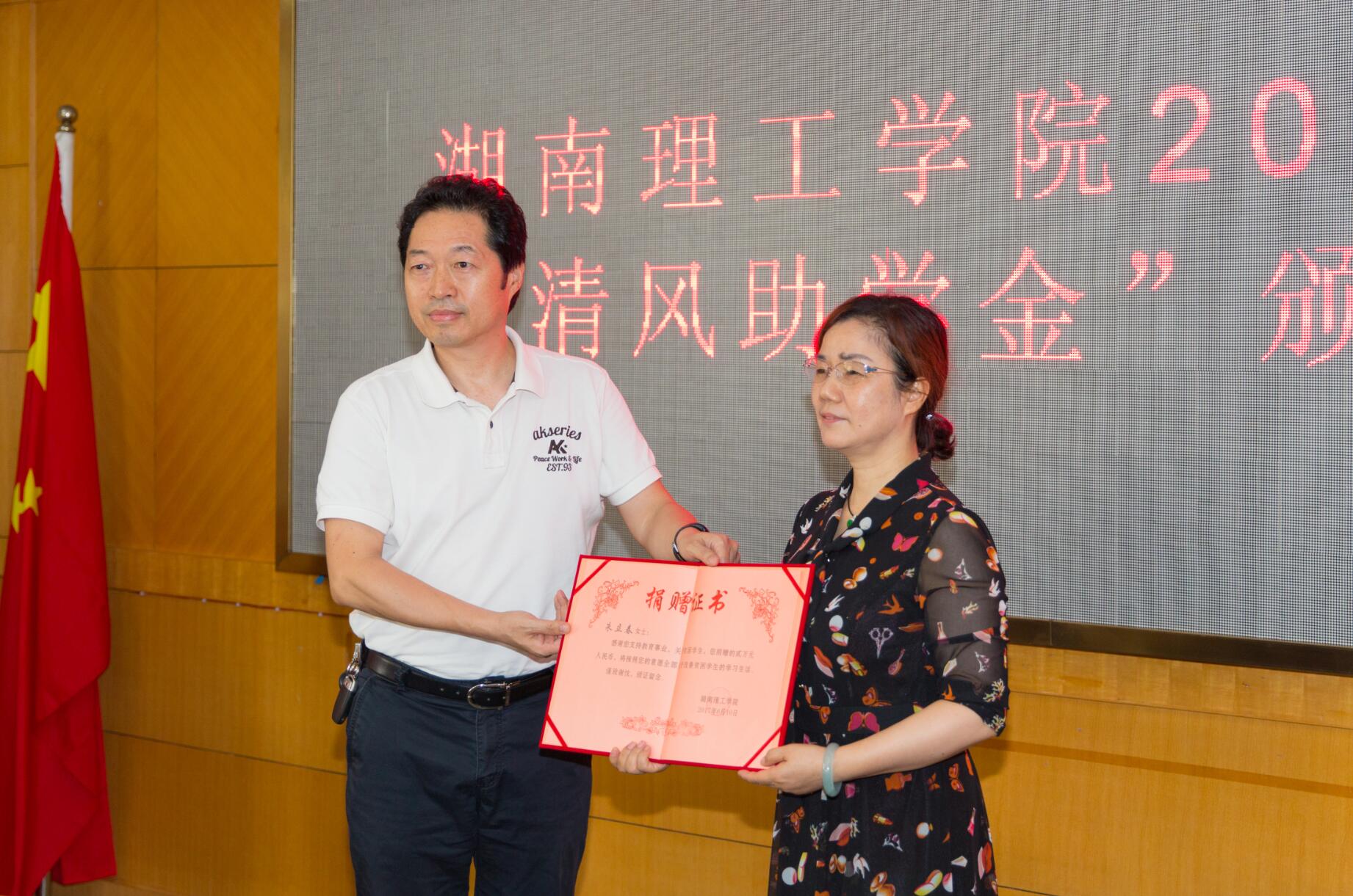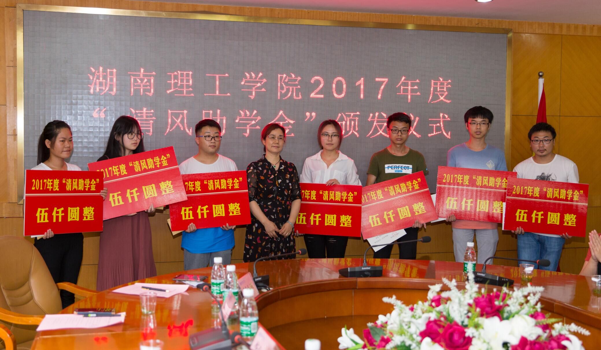 校园网讯 6月20日下午,2017年度“清风助学金”颁发仪式在1号办公楼319会议室举行,“清风助学金”捐赠者――湖南天元和项目管理有限公司总经理朱立春女士,岳阳市妇联党组书记、主席王亚丹、妇联副主席吴玉玺、妇联成员王凌、刘小平,岳阳市女企业家协会秘书长李白云、常务副会长田静以及致公党参与党员参加仪式。党委委员、组织部长刘创出席,党委学工部、土建学院相关负责人参加仪式。学工部负责人主持仪式。
