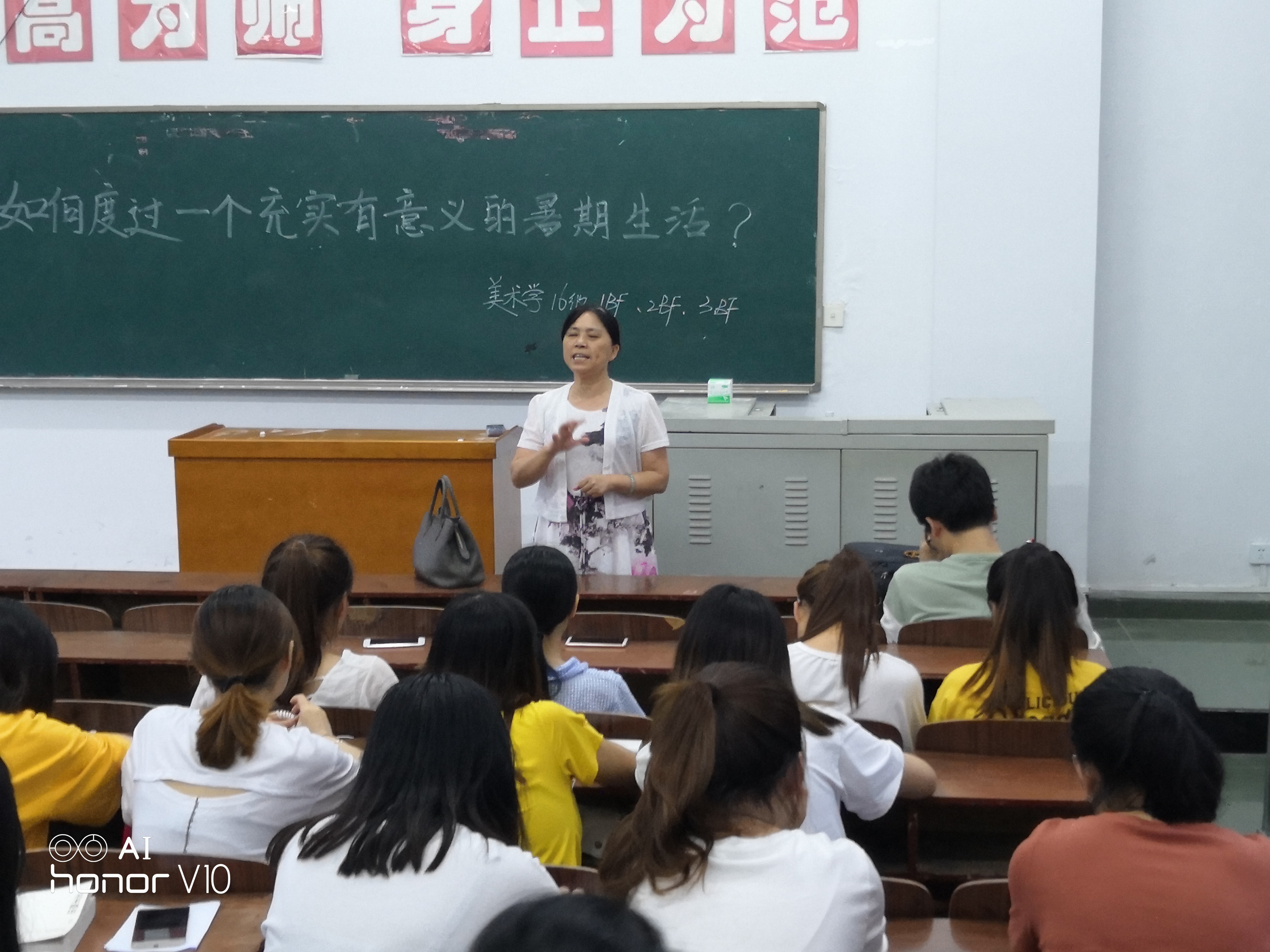 “加强专业学习、进行社会实践、分担各类家务、出门开阔眼界,”7月4日下午,在美设学院3208教室举行的班级导师主题班会上,担任2016级服装班的班级导师陈钰如此要求同学们。