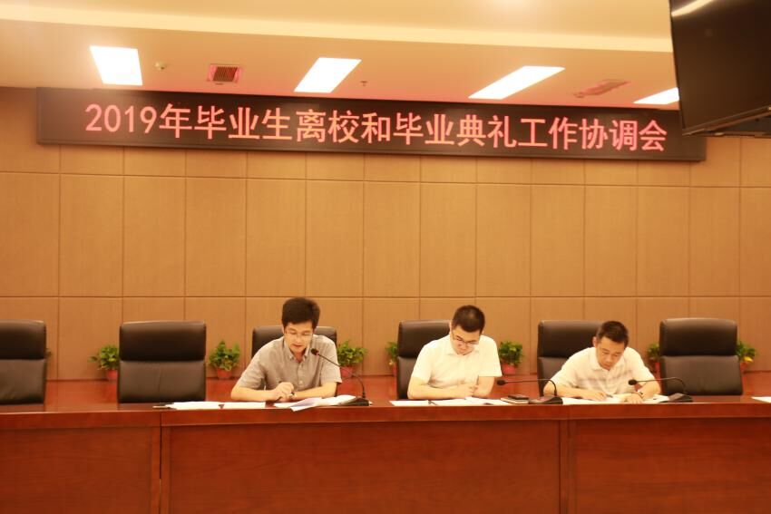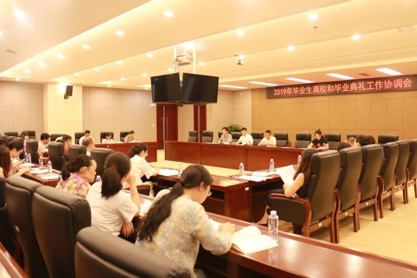 本网讯6月5日下午,学校2019届毕业生离校和毕业典礼工作协调会于图书馆11楼会议室举行。党政办、宣传部、学工部、团委、教务处、研究生院、后勤处、保卫处、校友办、教科院相关工作负责人以及各学党总支副书记、毕业年级辅导员参加会议。会议由党委学工部部长徐振祥主持。