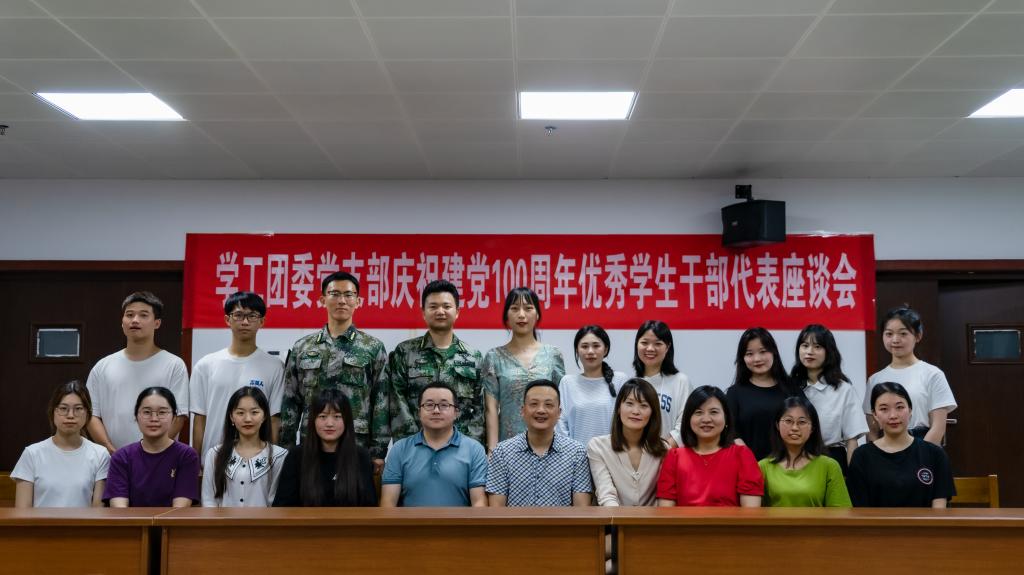 本网讯 在中国共产党成立100周年纪念日即将来临之际,学工团委党支部于6月27日19点,在12栋教学楼409教室举行庆祝建党100周年优秀学生干部代表座谈会,学工部副部长毛伟,学工部下属学生组织指导老师及优秀学生干部代表出席本次活动,活动由学工团委党支部副书记左峻主持。