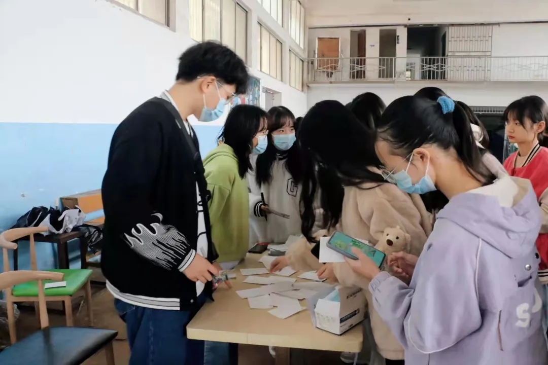 此次活动采用游戏与心理科普相结合的方式,设有六个摊位站点,各个摊位均依据不同的主题,设计了多种趣味性与实用性兼具的小游戏。“show time”摊位上,同学们模仿名画人物的动作与表情拍照,释放着自己的天性,展示自我有趣的形象。“银杏树下,与灵魂对话”摊位中,同学们在室外挑选喜欢的树叶带回,用水彩笔、剪刀等工具进行大胆创作,在便利贴上写下自己的所思所想,从而在游戏中进一步认清自我,在浮华喧嚣处触摸内心的安宁。