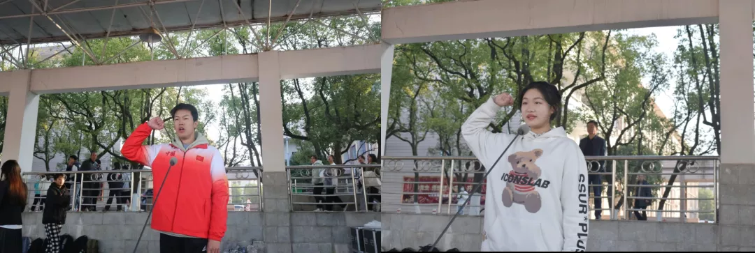 开幕式上,运动员代表信息学院李佳璐庄严宣誓,积极弘扬奥林匹克精神,尊重比赛与对手,团结协作,顽强拼搏。裁判员代表体育学院陈泽辉承诺,将严格执法,公正裁判,确保各项比赛工作的顺利进行。