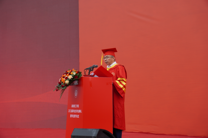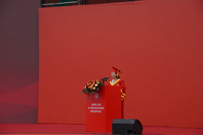 典礼上,副校长徐小立教授宣读了2023届毕业生学位授予决议。徐振祥和汤小红分别宣读2023届本科生优秀毕业生表彰决定和2023届研究生优秀毕业生表彰决定。123名本科生与12名研究生获评“2023届湖南省普通高等学校优秀毕业生”荣誉称号,12名本科生与1名研究生获评“2023届湖南省普通高等学校创新创业优秀毕业生”荣誉称号。党委副书记张国云、纪委书记谢贵辉、副校长丁跃浇分别为毕业生颁奖。