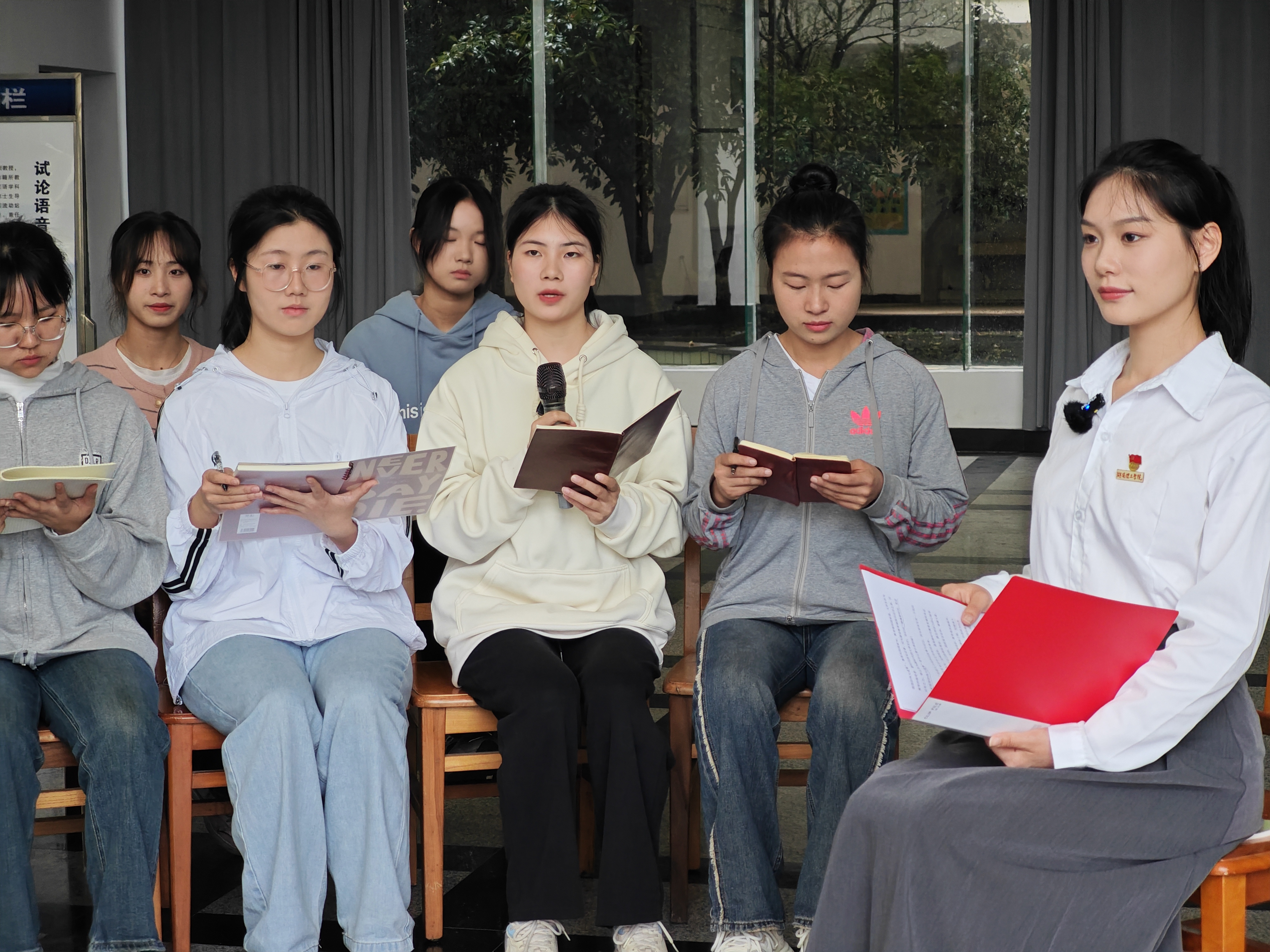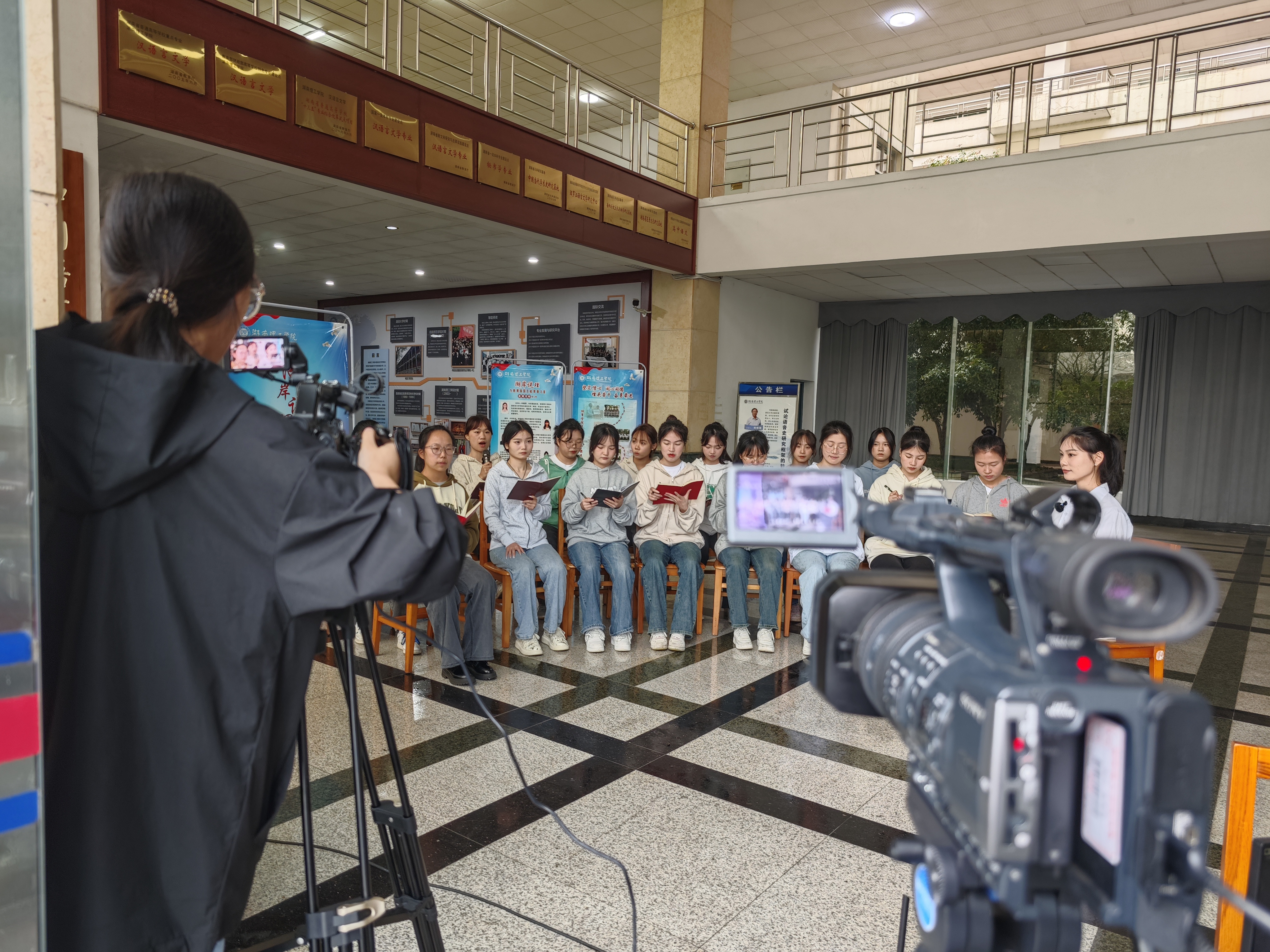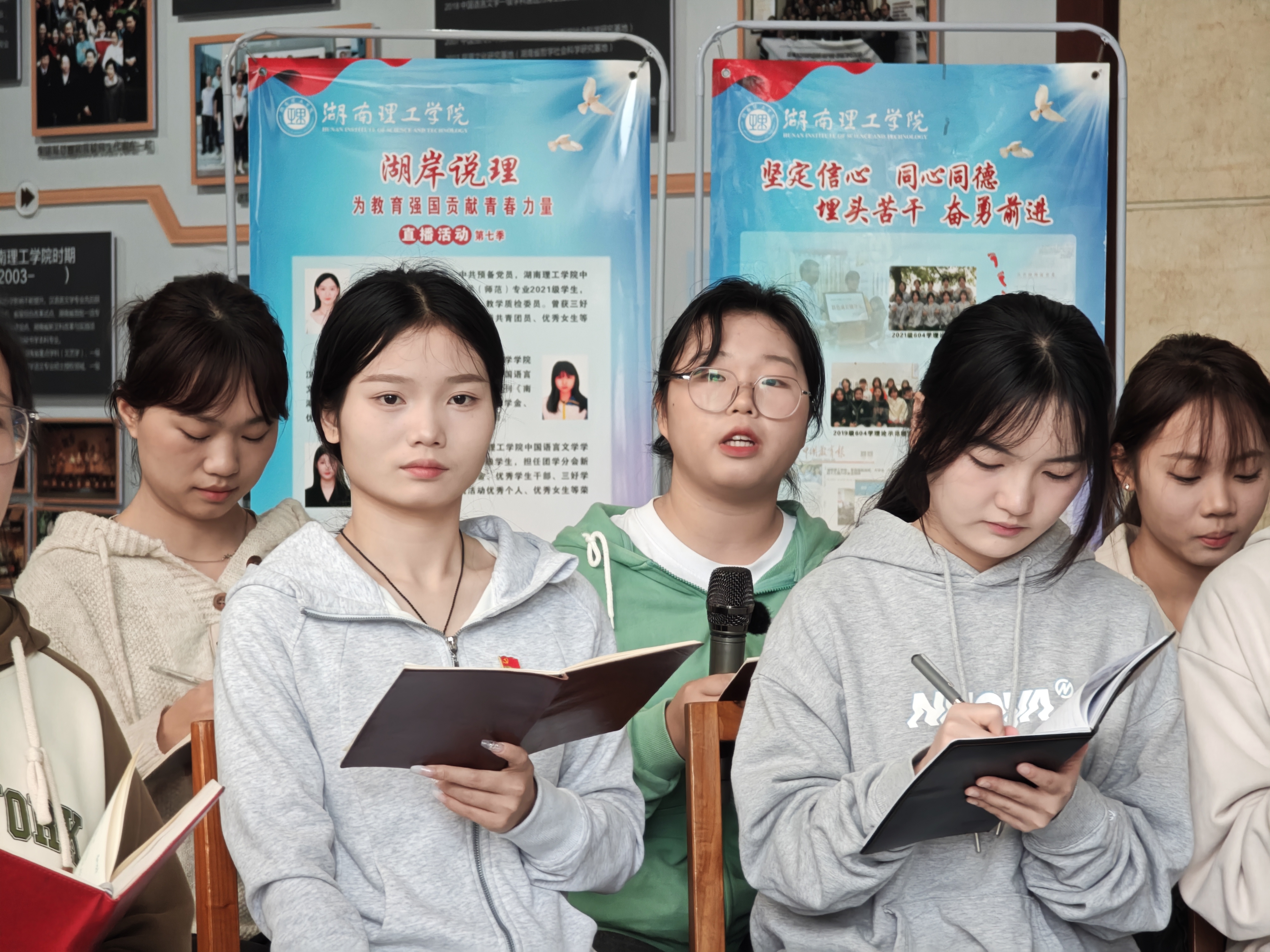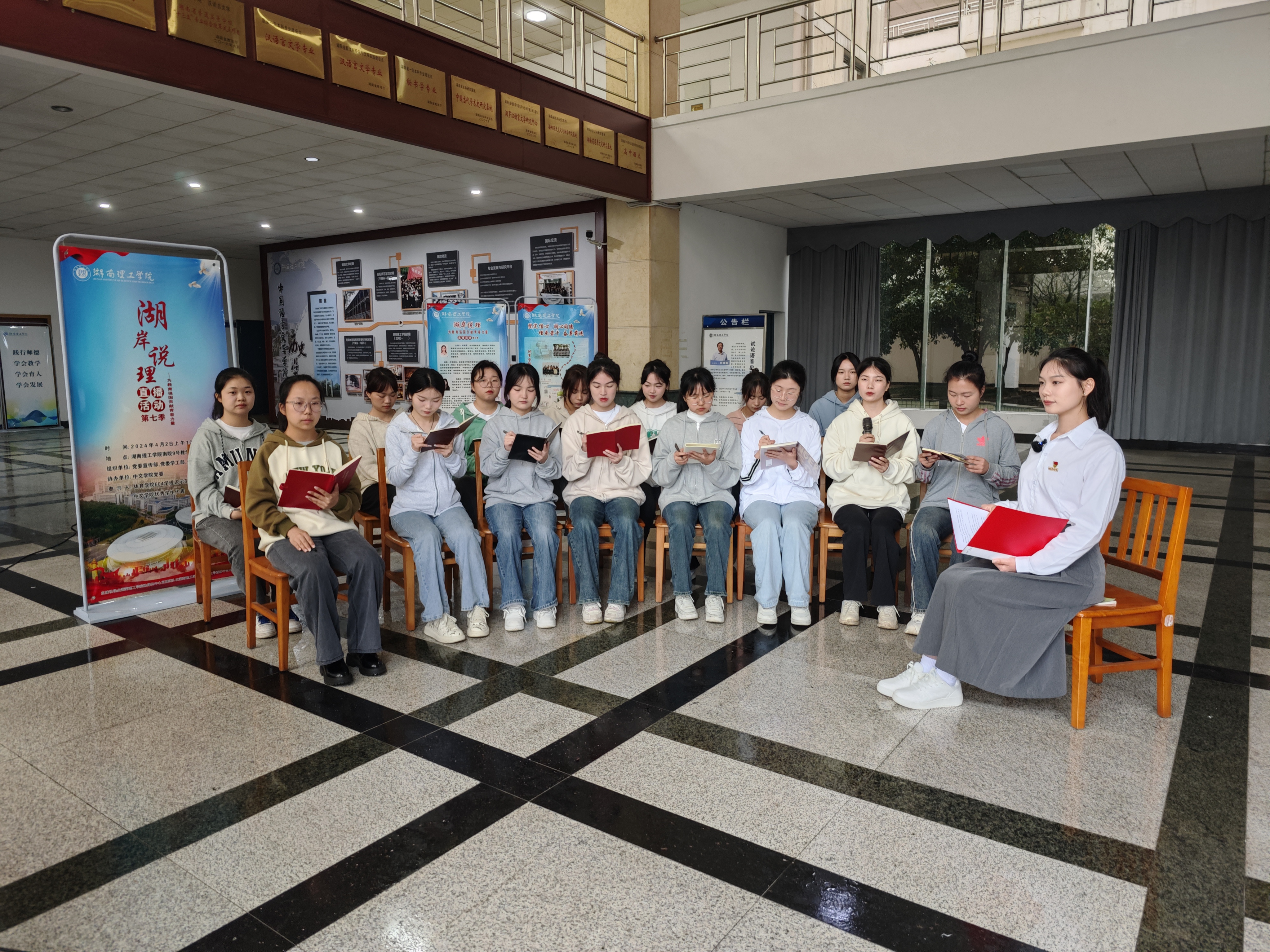 本网讯 “习近平总书记在中共中央政治局第五次集体学习时强调,建设教育强国,是全面建成社会主义现代化强国的战略先导,是实现高水平科技自立自强的重要支撑,是促进全体人民共同富裕的有效途径,是以中国式现代化全面推进中华民族伟大复兴的基础工程。”4月2日上午,湖岸说“理”第七季直播活动在南院9号教学楼一楼大厅举行。体育学院604学理论示范寝室成员和中国语言文学学院优秀学生代表们以“为教育强国贡献青春力量”为主题,从“铸魂新时代,见证教育强国的伟大成果”“责任在肩,为教育强国而学习实践”“勇毅前行,为教育强国贡献青春力量”等三个层面畅聊个人所思所想。