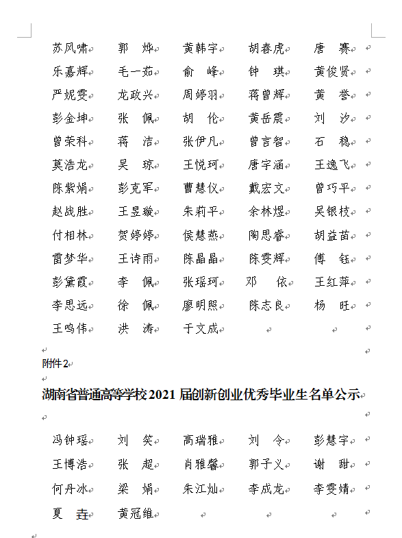 附件2:湖南省普通高等学校2021届创新创业优秀毕业生名单公示