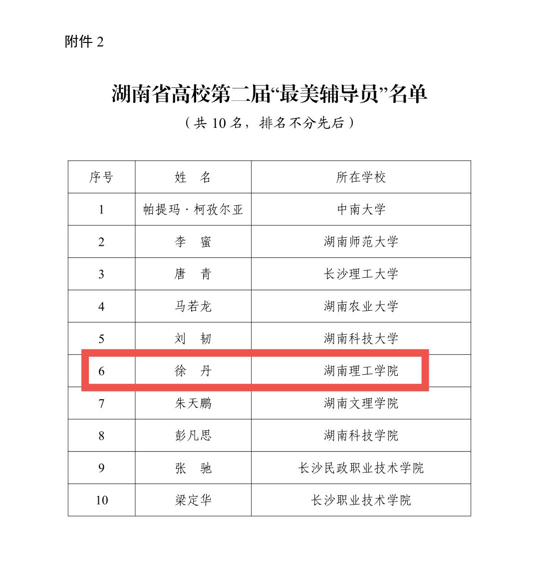 本网讯 10月8日,中共湖南省委宣传部、湖南省委教育工委以及湖南省教育厅联合发布了关于“湖南省高校第二届最美思政课教师、最美辅导员、最美大学生推选结果的通报”。我校徐丹老师喜获“最美辅导员”荣誉称号,李宇曦同学喜获“最美大学生”荣誉称号。