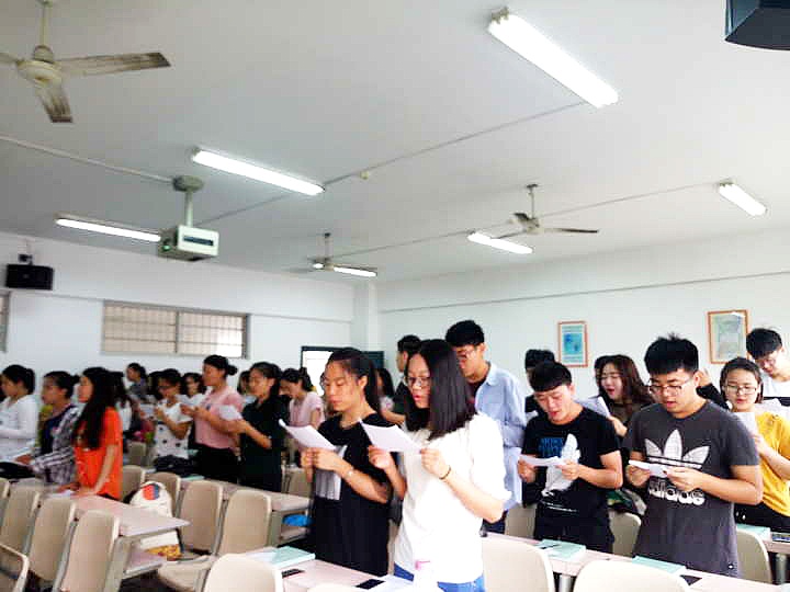 5月11日,为传承五四爱国情怀,奉献青春促进发展,数学学院积极响应学校活动,开展课前三分钟朗读活动;数学学院党总支副书记易政群,团总支书记、15级辅导员傅丹,13、14级辅导员何铁勇及各位任课老师和全体学生一同参与本次活动。