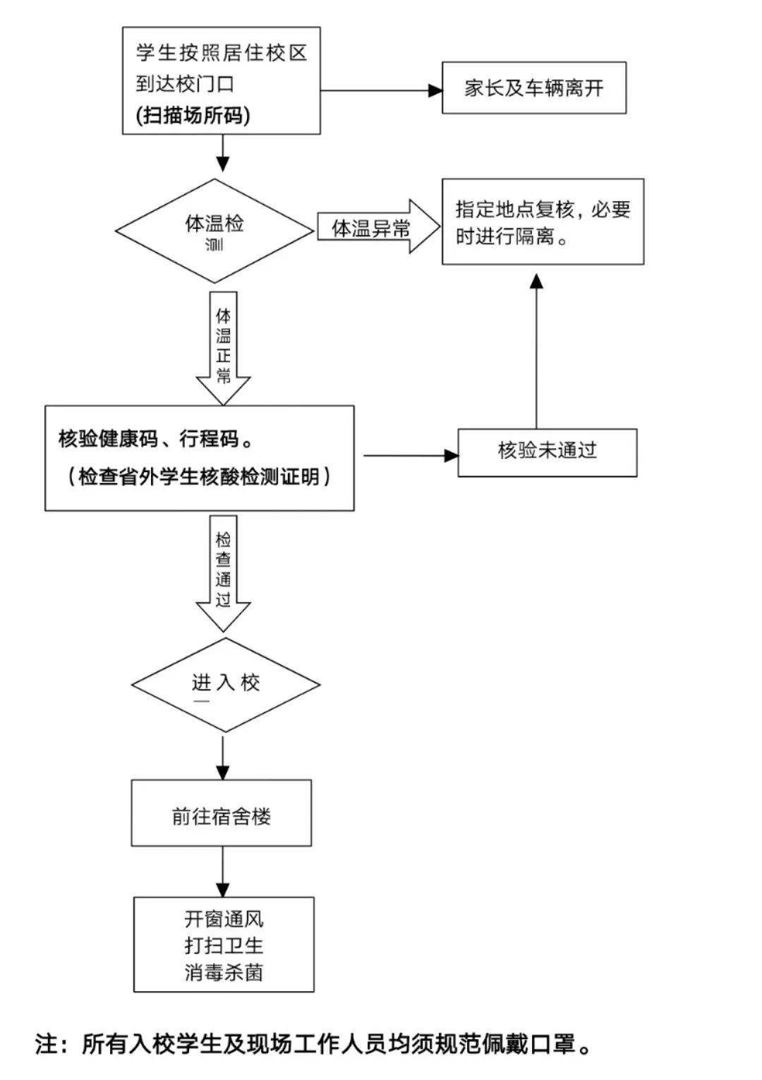 4.核验返校学生身份时,如发现未经审批同意的学生返校,核验工作人员要立即联系学工部、保卫处和学生所在学院妥善处理。