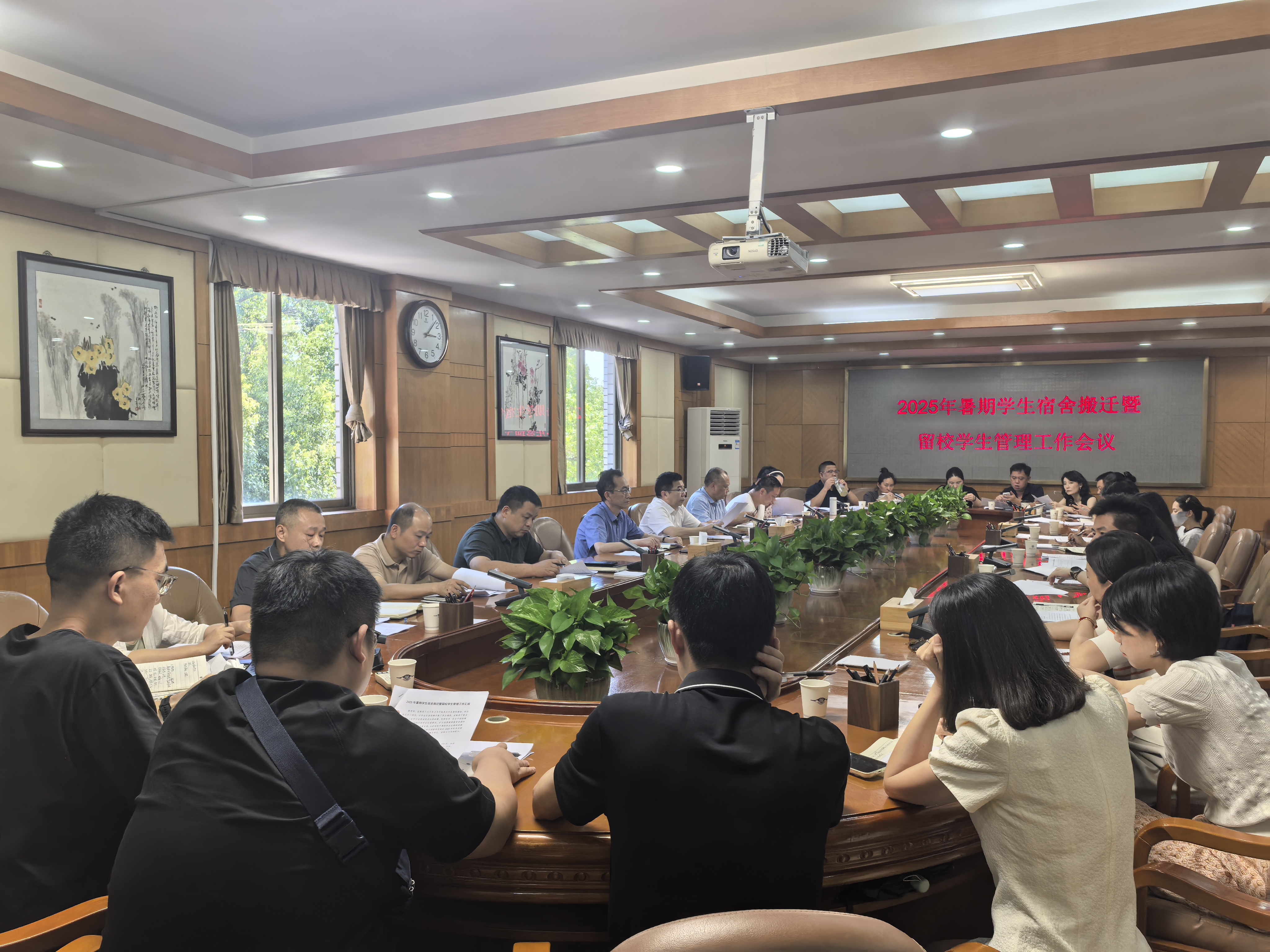 校园网讯 7月1日下午,学校在办公楼319会议室召开2025年暑期学生宿舍搬迁暨留校学生管理工作会议。校党委委员、副校长徐振祥、丁跃浇出席会议,学工部主要负责人、后勤基建处主要负责人以及各院系学生工作负责人参加会议。