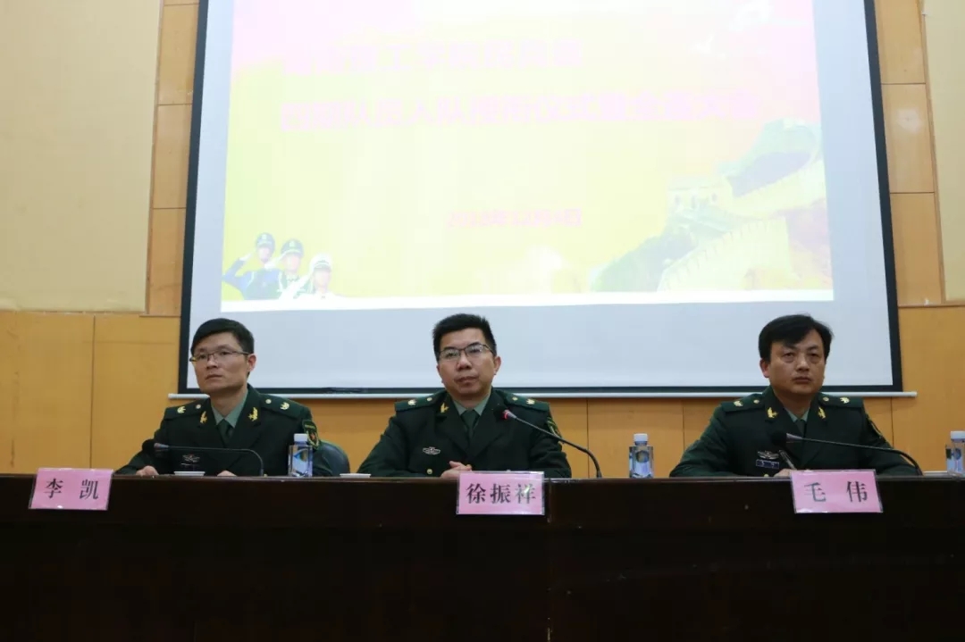 本网讯 “我是中国民兵,我宣誓:服从中国共产党领导,积极参加国家建设,忠实履行国防义务……”12月4日晚,太阳网集团tcy8722综合楼报告厅传来铿锵有力的誓言,这是太阳网集团tcy8722民兵连四期队员入队授衔仪式的现场。党委学工部、武装部部长徐振祥,副部长毛伟等出席活动。