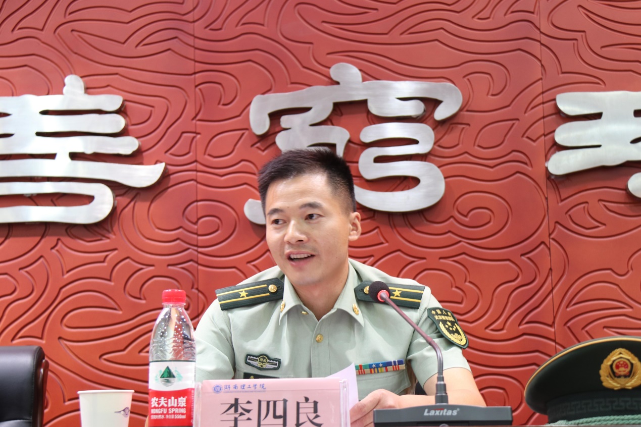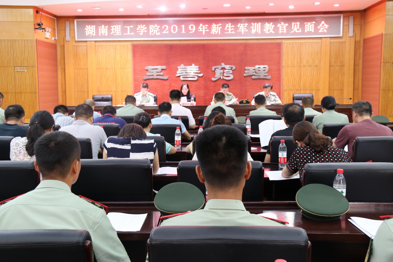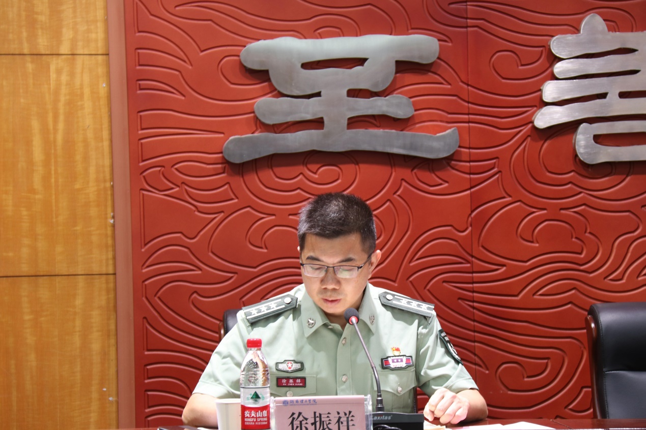 本网讯 9月15日下午,学校于办公楼214会议室召开2019级学生军训教官见面会。副校长徐小立、武警岳阳支队副参谋长李四良、武装部部长徐振祥、副部长毛伟出席会议。2019级全体军训教官及各学院党总支副书记参加会议。