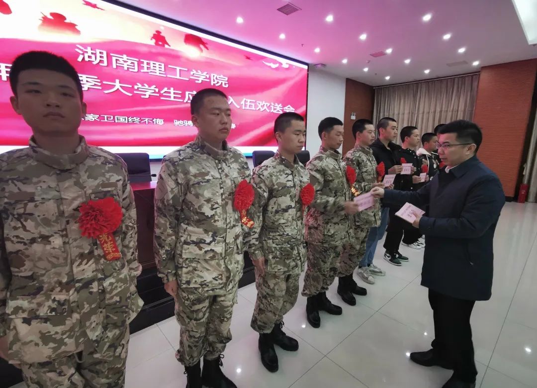 会上,12名即将奔赴军营的学生胸戴光荣花依次作了自我介绍,表达了对未来部队生活的期待,并决心努力训练,早日成为一名优秀的“四有”革命军人。徐振祥代表学校送去了关怀与问候,并勉励他们牢记习主席的嘱托,在强军思想的指引下,把部队优良作风与学校严谨求实的校风结合起来,在部队淬炼成钢,为母校争得荣誉,展示当代青年大学生的良好精神风貌。