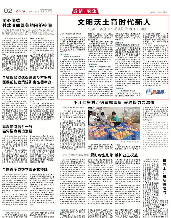 环境育人,更体现在细微之处。图书馆、教育阳光服务中心等窗口单位传递着文明的温暖;“光盘行动”让节俭惜福成为师生们的自觉习惯;南湖学堂、岳州窑基地成为科普教育的前沿阵地……社会主义核心价值观在这里潜移默化、深入人心。